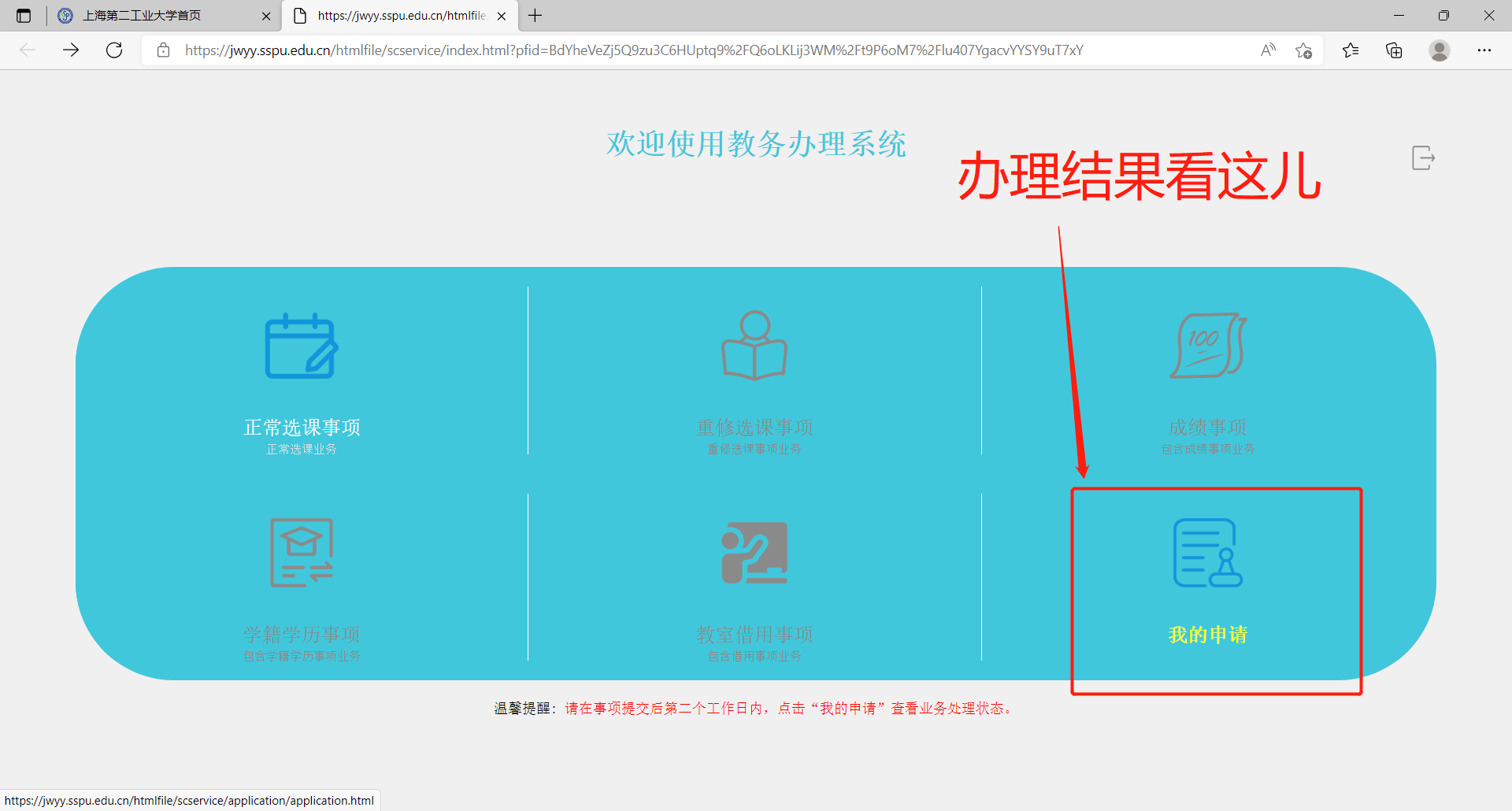 4、已提交内容可在“我的申请”中查看,也可查看办理结果。