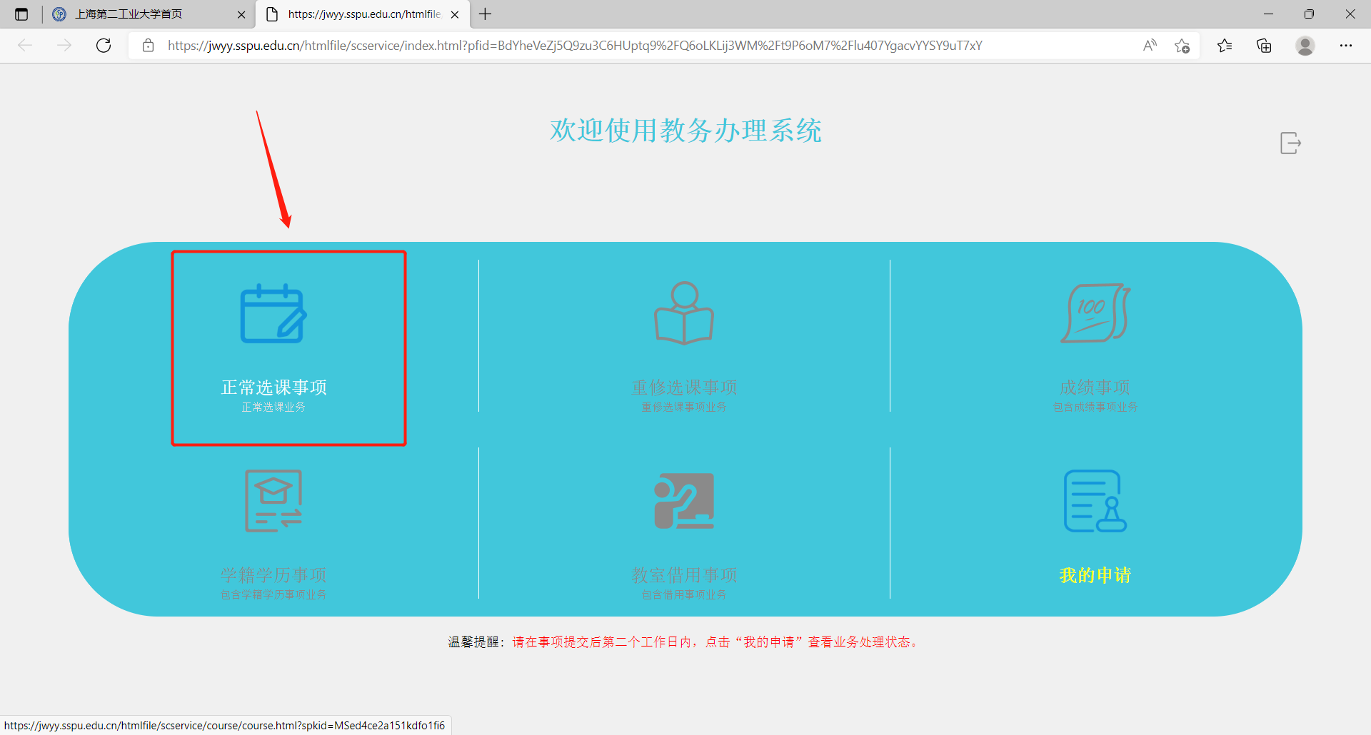 提醒:此次选课为夏季学期正常选课,不是夏季学期重修选课阶段(夏季学期重修选课时间暂未安排,敬请等待教务处主页及“二工大教务E线”公众号平台通知)
