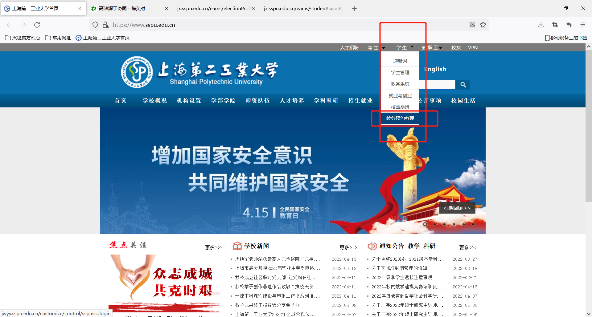 选课期间,同学们可以登录http://jx.sspu.edu.cn或进入教务处主页http://jwc.sspu.edu.cn/demo.htm快速通道中的“教学信息平台”进行选课。浏览器推荐使用火狐浏览器。