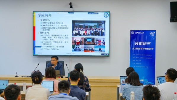 公司承办人工智能与计算机科学分论坛,分论坛通过专题报告、学术研讨、人才洽谈等形式,聚焦智能时代背景下高端人才培养等问题,共同研讨如何实现人工智能与人才培养的双向赋能,促进海内外青年学者互动交流,加强不同研究领域的合作,同时加深学者们对公司和公司的全面了解,吸引更多优秀青年学者来校发展。来自英国开放大学、日本会津大学、北京大学、上海交通大学、上海大学、东北师范大学、宁波诺丁汉大学、哈尔滨理工大学、南京理工大学的11名青年学者在分论坛上作交流报告,公司50多名青年教师和研究生参加,分论坛由薛建新老师、王腾老师主持。