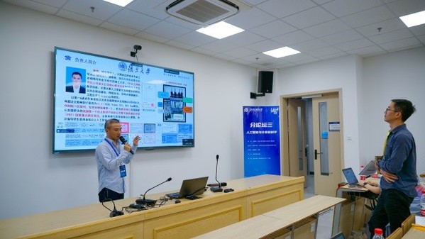报告环节,受邀的11名青年学者围绕人工智能算法前沿、全息投影人机交互、智慧城市、智慧农业、智慧医疗、生物传感等领域进行交流汇报。报告内容前沿,现场氛围活跃,20多名师生进行了交流互动。
