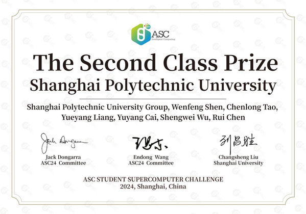 2024年1月10日至4月13日,yl6809永利5名同学在上海参加ASC世界老员工超级计算机竞赛,并荣获二等奖。