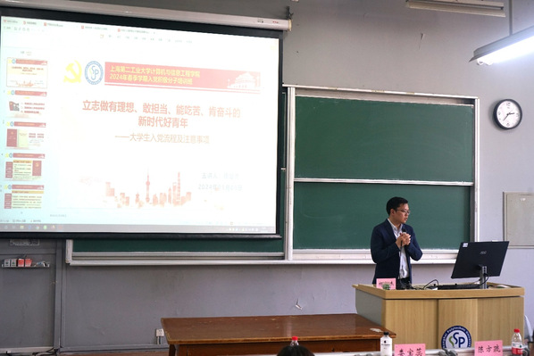 开班仪式结束后,计算机科学与技术系员工党支部书记杨超杰以“立志做有理想、敢担当、能吃苦、肯奋斗的新时代好青年——老员工入党流程及注意事项”为主题进行授课。杨老师对入党流程进行详细的讲解,带领学员深入理解习近平总书记“十六字”总要求,强调要加强自身的责任意识和身份意识,发挥先锋模范带头作用,并希望学员们将培训班所学的内容内化于心、外化于行,不断提高思想觉悟、政治素养和理论水平。