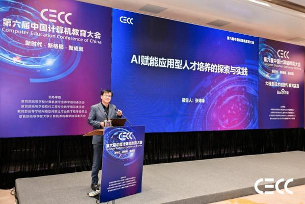 本届大会以“新时代·新格局·新成就”为主题,来自全国计算机学术界、教育界和产业界的100多位领导和专家,以及3000多位高校教师和产业代表齐聚一堂,共同探讨新时代计算机教育的发展方向。yl6809永利经理张博锋受邀出席,并在大模型技术创新与教育实践大会论坛中发表题为“AI赋能应用型人才培养的探索与实践”的主旨报告。