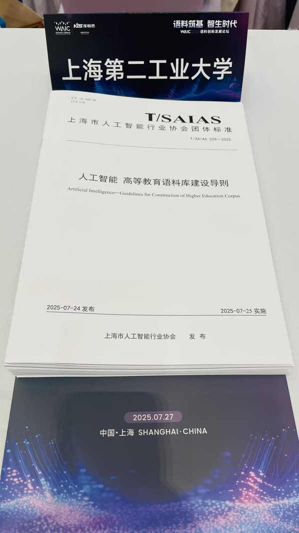 7月27日,在“语料筑基 智生时代”WAIC 2025语料创新发展论坛上,由公司参编的上海市人工智能行业协会团体标准《人工智能 高等教育语料库建设导则》(T/SAIAS 029-2025)正式发布实施。