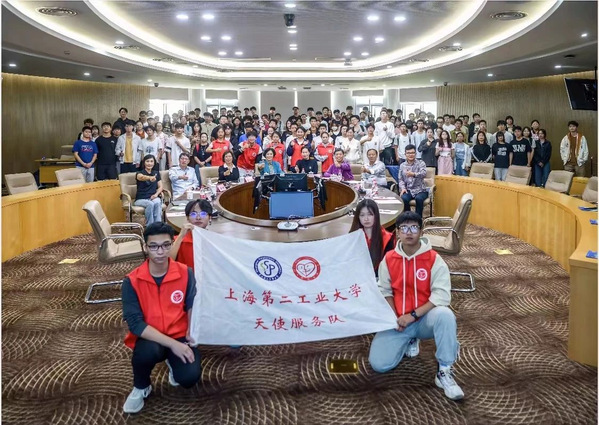 接着,徐佩莉老师以“在学习中传承,在服务中创新”为题,为大家讲述“牵手艺术彩虹 献给未来地球”的项目由来、意义、实践回顾等内容。她以二工大关肇勋、吴小滔两位退休老教授编写《电脑棋艺》帮助特殊孩子共享信息技术与趣味棋艺的感人事迹为例,表示劳模工匠精神在老教授身上得到了充分体现。最后,徐佩莉老师寄语志愿者同学们:向劳模、工匠学习,锤炼服务社会的思想品格;把握志愿服务精神,渗透志愿服务全过程;以专业知识技能服务社会,在创新实践中提升本领;将天使服务队的光荣旗帜高高举起,在大爱服务中擦亮奖牌。并衷心祝愿天使服务队在新时代再上台阶、再创辉煌!