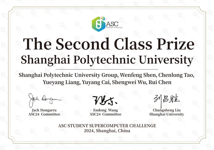 From January 10 to April 13, 2024, five students from the School of Computer and Information Engineering participated in the ASC World University Supercomputer Competition in Shanghai and won the second prize.